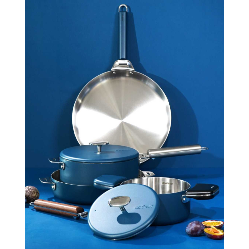 Compatible avec la poignée amovible Cookut (vendue séparément), cette casserole peut aussi être équipée de poignées fixes en inox massif peint ou en bois massif. Aucun plastique, pour un design durable et responsable.