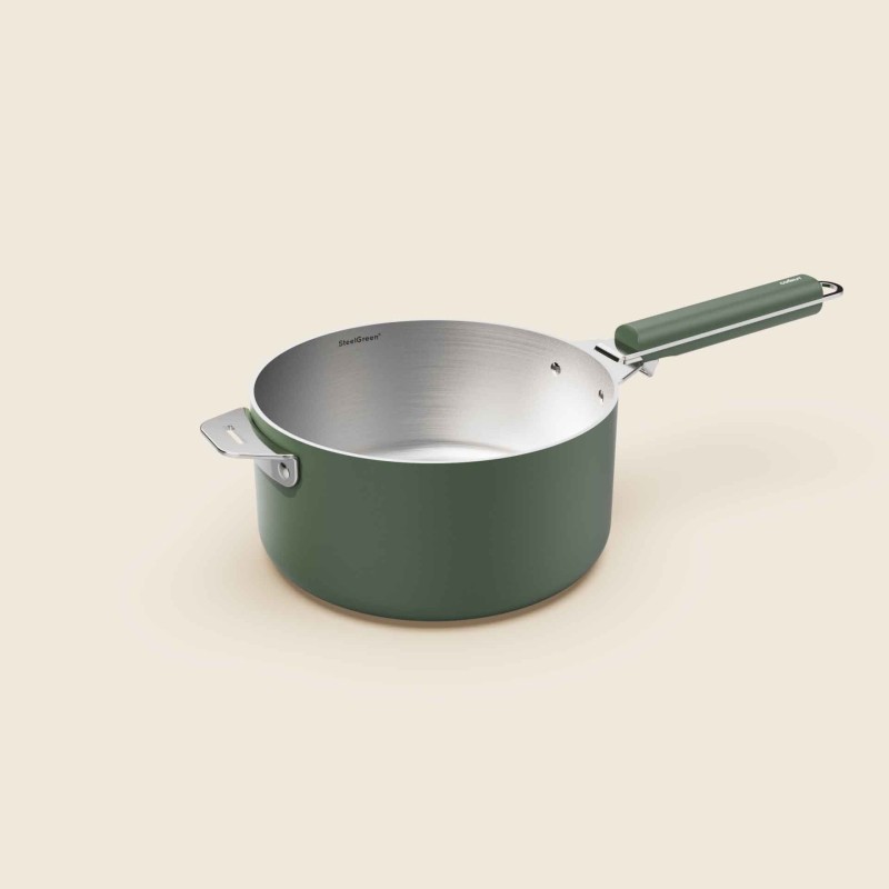 Compatible avec la poignée amovible Cookut (vendue séparément), cette casserole peut aussi être équipée de poignées fixes en inox massif peint ou en bois massif. Aucun plastique, pour un design durable et responsable.