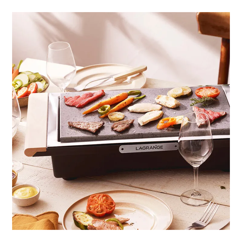 Convivialité assurée : partagez une cuisson en centre de table pour cuire tout type de viande et griller vos condiments préférés.