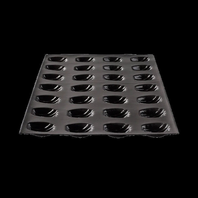 Moule 28 mini-madeleines - Origine - Une envie de madeleines dorées, moelleuses et parfumées ? - Optez pour ce moule et offrez-vous le bonheur de confectionner 28 mini-madeleines en une seule fournée ! - Grâce à ce moule, les possibilités de recettes sont infinies et vous aurez de quoi vous régaler lors de vos apéritifs dinatoires (mini-madeleines chorizo courgettes, mini-madeleines aux olives...) ou en accompagnement d’un petit café ou d’un thé (mini-madeleines chocolat, mini-madeleines citron…) - Technologie Origine : association du silicone 100 % platinium et d'un tricot de verre - Le tricot de verre permet une cuisson uniforme avec une meilleure répartition de la chaleur, une meilleure résistance, une plus grande flexibilité et une plus grade durabilité - Démoulage parfait garanti grâce au revêtement en silicone - Sa grande durabilité vous permettra d'utiliser ce moule jusqu'à 3000 fois, ce qui parfait pour les amateurs de pâtisserie - Résiste à des températures allant de -40° à +240°C pour une grande flexibilité dans vos préparations vous permettant d'utiliser ce moule au four, au réfrigérateur ou au congélateur sans risque de l'endommager - Dimensions du moule 37,5 x 29 x 1,5 cm - Dimensions des empreintes 5,5 x 3,5 x 1,5 cm - Contenance de chaque empreinte 1,5 cl - Nettoyage facile à l'eau chaude savonneuse - Fabriqué en France.