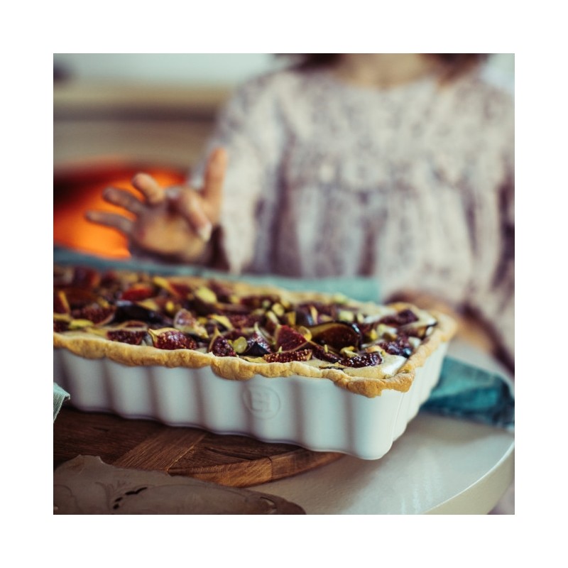 Le long plat à tarte Emile Henry révèle les recettes les plus classiques sous un nouvel angle. Avec ses parois hautes, il permet non seulement de réaliser des tartes longues et fines, mais aussi des quiches et clafoutis épais.