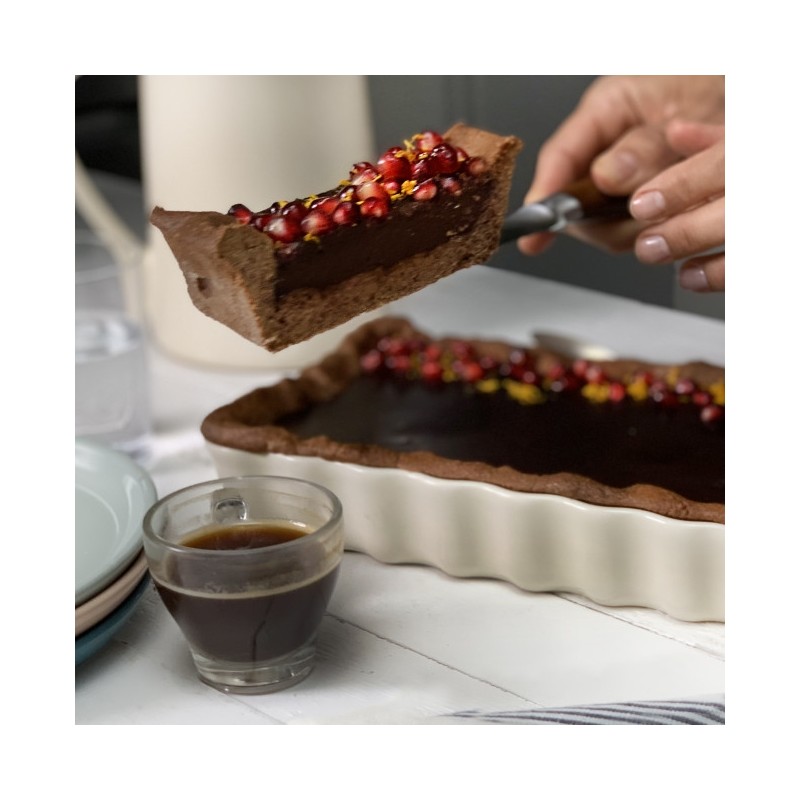 Conçu en céramique HR® (haute résistance), il diffuse la chaleur et permet de cuire à cœur même les préparations les plus épaisses, sans en brûler les bords. Avec ou sans croûtes, vos réalisations pourront être servies et coupées à même le plat sans risquer de le rayer. Une part de tarte rectangulaire, c’est plus original, facile à servir et pratique à emballer pour un goûter nomade ou un déjeuner au bureau.