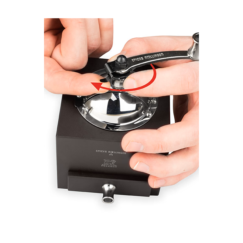 Le mécanisme à poivre est muni d´une double rangée de dents hélicoïdales qui capture les grains, les entraînes vers le bas, puis les bloque afin de les moudre parfaitement.