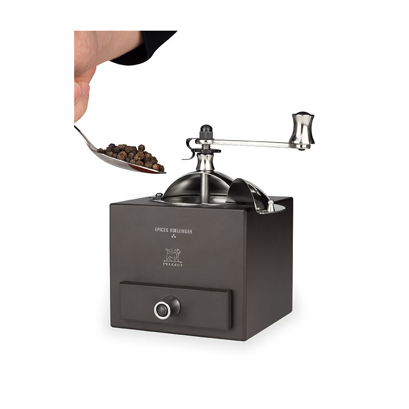 Le mécanisme est adapté aux poivres : noir, blanc, vert et aux baies roses si elles sont mélangées à l'un de ces 3 poivres (maxi 15 % de baies). Il convient également à la coriandre.
