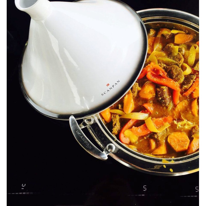 La Tajine Scanpan offre une cuisson à l’étouffée optimale pour préparer tous les ragoûts, plats mijotés, et autres jardinières de légumes : une expérience culinaire que vos convives et vous même n’êtes pas prêts d’oublier.