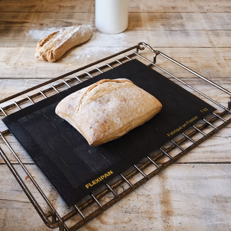 Cette toile de cuisson se compose d'une toile de verre ajourée et d'un revêtement en silicone. Elle devient rapidement un accessoire indispensable en pâtisserie et en cuisine pour remplacer le papier sulfurisé. Elle est utilisée pour la cuisson des pâtes à biscuits, des pâtisseries, des viennoiseries, des tartes, des pizzas, des cookies ou encore des pains maisons. Grâce à sa surface ajourée, cette toile boulangère permet une circulation optimale de l'air chaud, assurant une répartition homogène de la chaleur et donc une cuisson uniforme. Le revêtement en silicone garantit une surface antiadhésive qui ne nécessite aucune matière grasse. Le nettoyage est également simplifié : un coup d'eau savonneuse et d'éponge suffit.